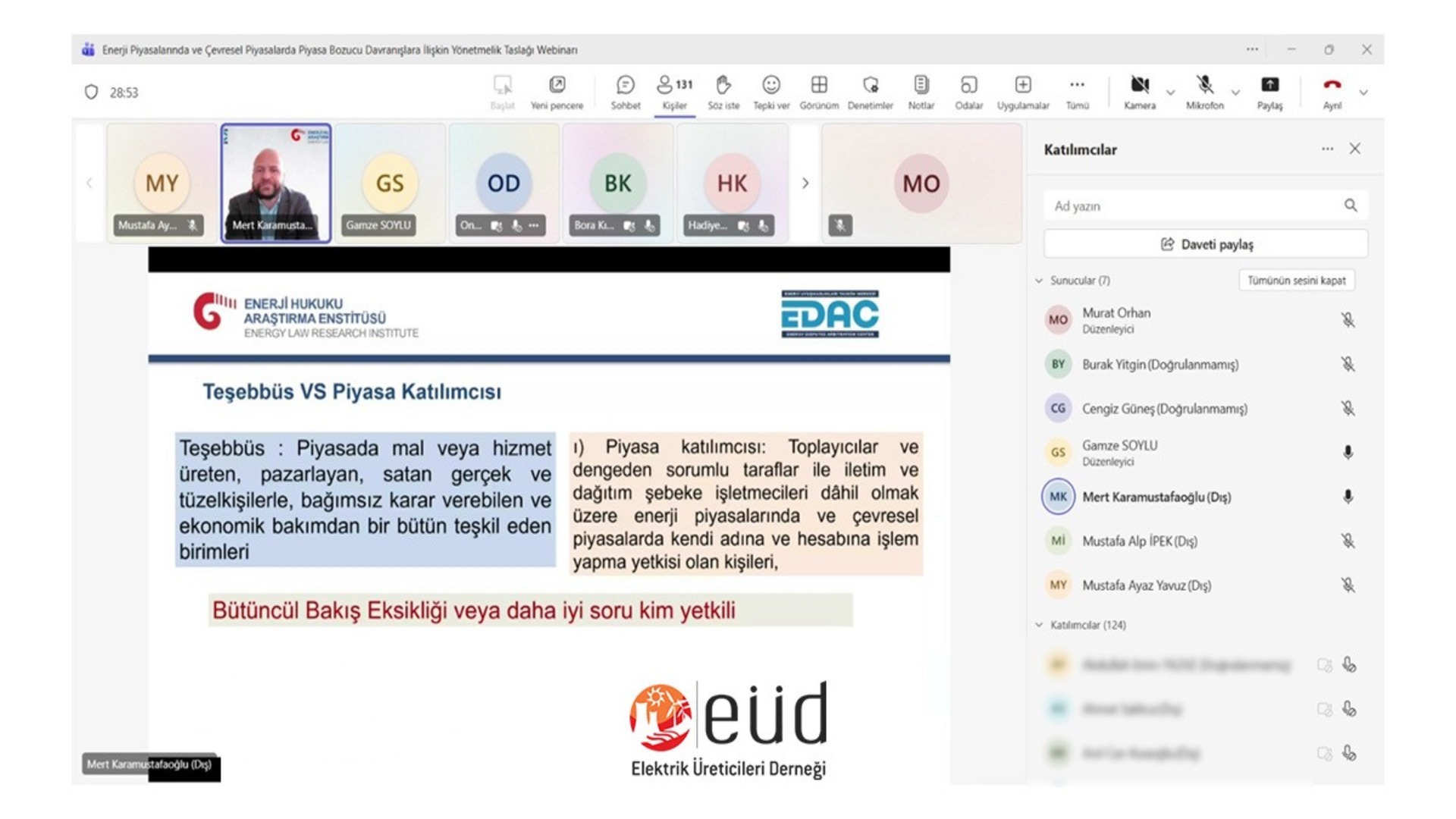 EÜD & EHAE - Enerji Piyasalarında ve Çevresel Piyasalarda Piyasa Bozucu Davranışlara İlişkin Yönetmelik Taslağı Webinarı